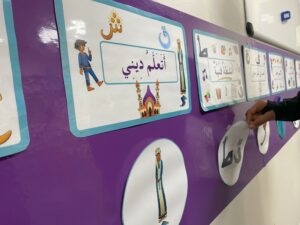 C’est aussi et avant tout une méthode qui se veut immersive. Notre méthode utilise exclusivement la langue arabe dans l’apprentissage de la lecture. Ainsi, nous avons puisé dans la langue arabe pour nommer nos personnages qui représentent chaque lettre de cette langue. Ce choix pédagogique a le mérite de permettre à l’enfant de se familiariser avec la langue arabe tout en commençant l’apprentissage de la lecture. De plus, il pourra s’imprégner naturellement à travers le récit qui lui est conté oralement. Les habitants de la planète Kawkab utilisent en effet des expressions, des syntaxes en arabe. L’apprenant pourra répéter autant de fois qu’il le souhaite ces nouveaux mots, ces nouvelles expressions pour les mémoriser et ainsi enrichir son vocabulaire.